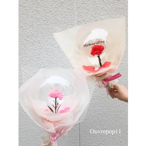 母の日 カーネーション 文字入れOK 透明バルーン クリアバルーン フラワーバルーン バルーンブーケ レッド ピンク 花束 1本花束