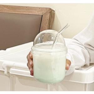 フタ付き ガラス カップ ドーム型 グラス 420ml 韓国風 撮影道具 シンプル 蓋付き コップ インテリア おうちカフェ クリア
