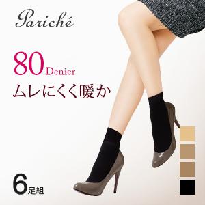 ムレにくい あったか 80デニール くるぶし丈 6足組