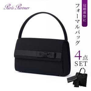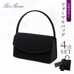 [パリスパートナー]ブラックフォーマルバッグ 巾着 袱紗 サブバッグ付き 4点セット レディース 黒 冠婚葬祭 喪服 礼服 葬儀 葬式 法事 結婚式 HK-1614