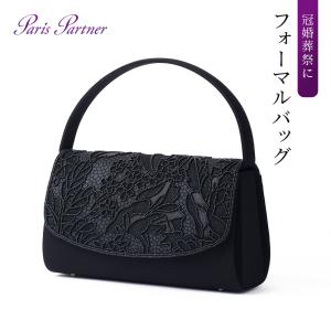 [パリスパートナー]ブラックフォーマルバッグ 手刺繍 草花 ビーズ レディース 黒 冠婚葬祭 喪服 礼服 葬儀 葬式 法事 結婚式 7301