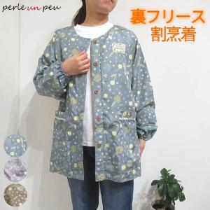 割烹着 裏フリース 冬 冬用 暖かい おしゃれ 裏起毛 極暖 前ボタン 前開き スモック かっぽう着 かっぽうぎ チュニック 保育士 あったか 羽織り 24-19035a
