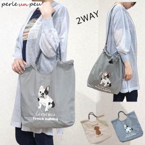 エコバッグ 犬 トートバッグ A4 2way ショルダー ナイロン 軽量 大容量 サブバッグ 犬グッズ ギフト トイプードル フレンチブルドッグ フレブル グレー ピンク