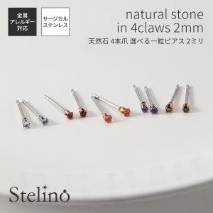 ピアス レディース メンズ 片耳用 1個売り サージカルステンレス製 天然石 3mm 裏ねじ 裏面フラット ワンストーン 一石 一粒 6本爪 シンプル