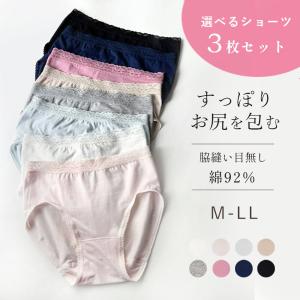 ショーツ レディース 綿 選べる3枚セット コットン 脇縫い目無し 快適肌触り インナー パンツ ひびかない やわらかい ノンストレス 大きいサイズ M L LL
