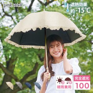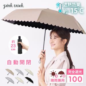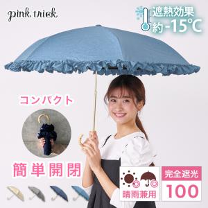 日傘 完全遮光 折りたたみ傘 軽量 晴雨兼用 6本骨 フリル レディース 3段折 傘 遮光率100% pink trick ピンクトリック