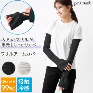 アームカバー レディース フリル UVカット 紫外線 接触冷感 指空き ロング 長め
