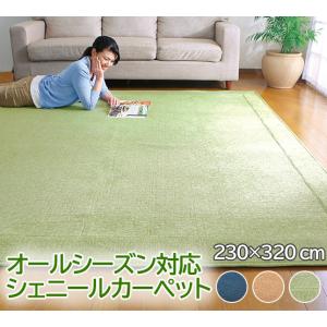 シェニール カーペット ラグ 年中使える オールシーズン シンプル インテリア 折りたたみ 洗濯 6帖 230x320 ライトグリーン ライトブラウン ネイビー 《os》