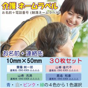 介護 名前+連絡先シール / 耐洗ネームラベル 10mm×50mm【30枚セット】N-34-A 名前+電話 印刷タイプ