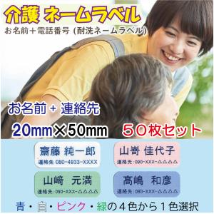 介護 名前+連絡先シール / 耐洗ネームラベル 20mm×50mm【50枚セット】N-35-B 名前+電話 印刷タイプ