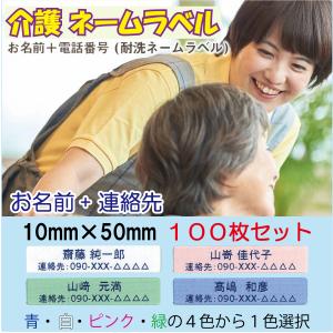 介護 名前+連絡先シール / 耐洗ネームラベル 10mm×50mm【100枚セット】N-36-A 名前+電話 印刷タイプ