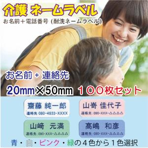 介護 名前+連絡先シール / 耐洗ネームラベル 20mm×50mm【100枚セット】N-36-B 名前+電話 印刷タイプ