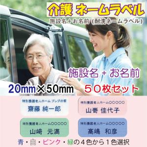 介護 施設名+名前シール / 耐洗ネームラベル 20mm×50mm【50枚セット】N-38-B 施設名+名前 印刷タイプ