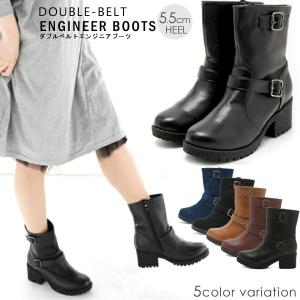 エンジニアブーツ ショートブーツ ブーツ レディース ダブルベルト