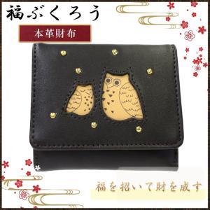 ふくろう 二つ折り 財布 プレゼント 金運 開運 福 フクロウ 福ぶくろう ダークブラウン