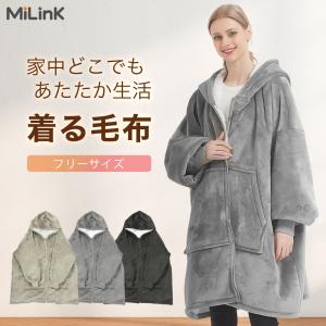着る毛布 フリーサイズ ファスナー フード付き ポケット 厚手 長袖 暖かい 襟なし 肩 ルームウェア ふわとろ毛布 もこもこ 大きいサイズ メンズ レディース