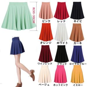 セール中 レディース 無地 シンプル ミニ スカート ポケット 付き フレアミニスカート ウエストゴムフレアスカート 膝丈