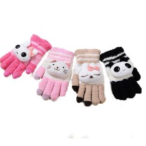 立体的なパンダが可愛いい スマホ対応 パンダ ニット手袋 女性用 フリーサイズ