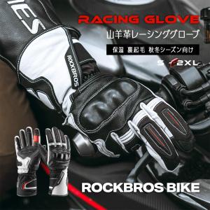 バイク グローブ 手袋 レザー 本革 山羊革 ナックルガード プロテクター レーシング フリース 保温 スマホ対応 SBRパッド 衝撃吸収 ロックブロス