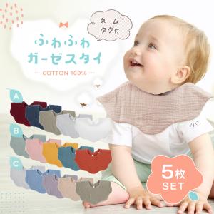 スタイ ガーゼ よだれかけ すたい ベビースタイ 女の子 男の子 名入れタグ付き 赤ちゃんスタイ 5枚セット 無地 ベビー 出産祝い かわいい
