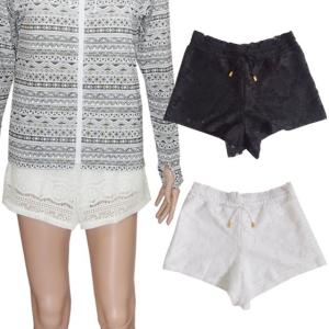 ショートパンツ 水着 レディース フラワー柄レース素材 水陸両用 ホワイト ブラック M L