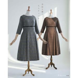 【ワンピース クララ】秋冬 上品 通勤 会食 七分袖 膝下丈 イエベ ブルベ ウェーブ ストレート お家洗い可 30代 40代 レディース レジーナ