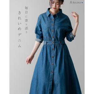 【デニム シャツ ワンピース】春 秋 きれいめ カジュアル 通勤 襟付 長袖 お家洗い可 ナチュラル 30代 40代 レディース