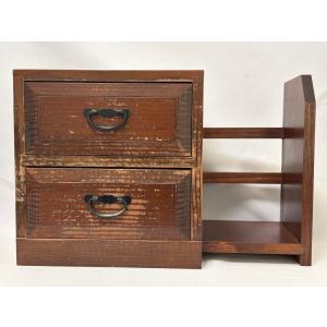 木製 小物入れ 本棚付 引出し 収納 インテリア小物 アンティーク 旧家蔵出し ヴィンテージ家具
