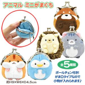 アニマル がま口 コインケース ボールチェーン付 ぬいぐるみ 小銭入れ マスコット かわいい 動物 ミニサイズ ストラップ 送料無料 ポーチ キーホルダー 山二