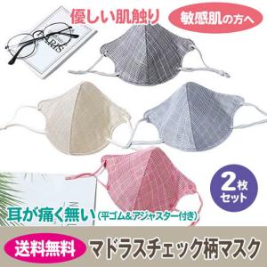 マスク2枚 布 マドラスチェック柄 敏感肌 優しい付け心地 洗える 布製 肌荒れ防止 送料無料 2枚セット 大幅値下げ