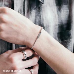 ステンレスブレスレット メンズ レディース チェーン カニカン マンテル式 チャーム付き ユニセックス アクセサリー カジュアル バングル お揃い プレゼント