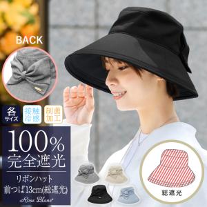 ハット レディース uv 帽子 日焼け防止 UV 完全遮光 100% リボン 総遮光タイプ 13cm つば広 各サイズ 制菌加工