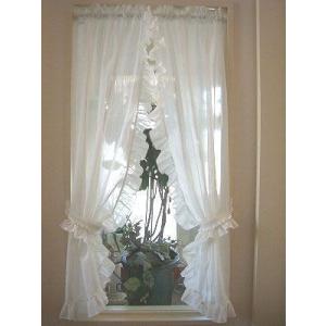 窓枠内ヨコ 51〜60cm×タテ 111〜120cm カフェカーテン おしゃれ かわいい 縦長 小窓 フリル レース 突っ張り棒 オーダー スウィートマーベル