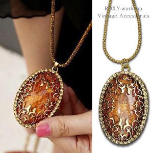 琥珀 ネックレス アンバー ペンダント エスニック アジアン チャイハネ チョーカー ロングチェーン 大きめ レディース 可愛い ヴィンテージ アクセサリー 長め