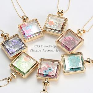 ネックレス ペンダント ガラス ドライフラワー 花 フラワー 香水瓶 チョーカー エレガント ファッション レディース パーティ 可愛い ビンテージ アクセ ギフト