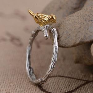リング 指輪 小鳥 小枝 シルバー フリーサイズ ゴールド 鳥 鳥雑貨 インコ オウム アクセサリー レディース 可愛い リース プレゼント ギフト