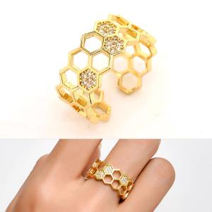 送料無料 リング 蜂 ハニー 指輪 フリーサイズ ミツバチ ステンレス キュービックジルコニア CZ 虫 ハロウィン 幾何学模様 ゴールド 六角形 ハニカム構造 蜜蜂