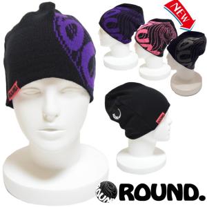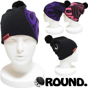 スノーボード スノボ ニット帽 ボンボン ビーニー(黒/紫/パープル)ブランド/ロゴ/キャップ/帽子/レディース/メンズ/人気(ROUND.)