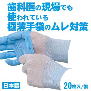 手荒れ予防 ムレ対策 ナイロン製下履き手袋 手汗対策 ゴム手用極薄インナー手袋 20枚入り(左右兼用) SG-818