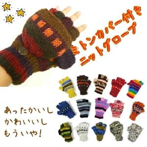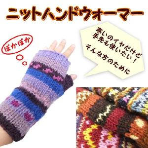 もこもこニットハンドウォーマー エスニック ネパール ニット 手袋 グローブ 指なし