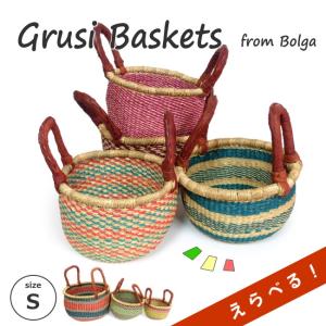 グルスィバスケット2本ハンドル カラー丸 小 エスニック アフリカ ボルガバスケット ブルキナバスケット 雑貨 カラフル カゴ 収納