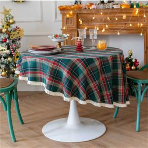 1枚 クリスマスグリーンチェック柄テーブルクロス、丸型テーブルカバー、直径120/140cm、厚手の織り生地、ホーム、キッチン、ダイニング、ディナー