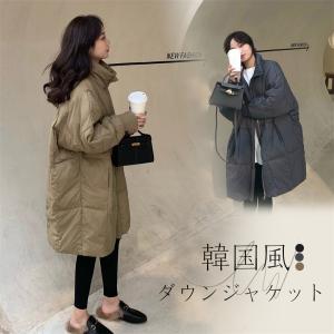 ダウンジャケット レディース 中綿入り ミドル丈 ゆったりサイズ 韓国風 厚手 レトロ あったか コート ひざ丈 シンプル アウター
