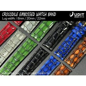 ラグ幅18mm 20mm 22mm クロコダイル型押し 本革 腕時計レザーベルト レッド グレー グリーン ブラック ブルー ブラウン 尾錠カラー選択可 バンド 送料無料