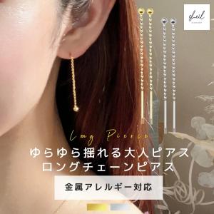 ピアス 金属アレルギー チェーンピアス シンプル スタッドピアス ロングピアス 大ぶり シルバー ゴールド 揺れる