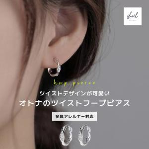 ピアス 金属アレルギー フープピアス ねじれ ダイヤ ジルコニア フープ シンプル ゴールド シルバー ニッケルフリー