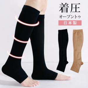 着圧 ハイソックス オープントゥ 靴下 保湿加工 抗菌防臭 日本製 ブラック ベージュ レディース 23cm〜25cm 黒 無地 着圧ソックス 着圧カ