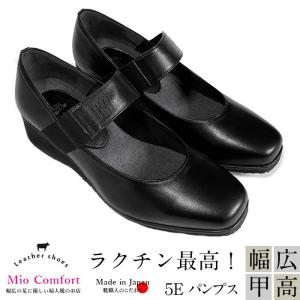 外反母趾 おしゃれ 靴 5E 幅広 パンプス 履きやすい 痛くない 日本製 甲高 レディース コンフォート 黒 本革 50代 60代