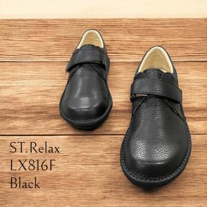 ☆新商品☆St.Relax コンフォートシューズベルクロプレーントウ/シボソフトレザー/BLK/CHOCO