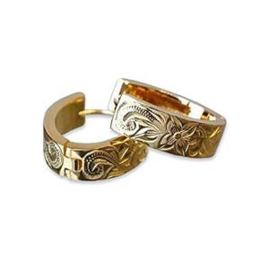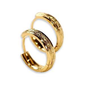 フープピアス ハワイアンジュエリー ピアス K24 純金仕上げ 透かし スクロール イヤリング メンズ レディース ピアス SurgicalStainless316L ksf073